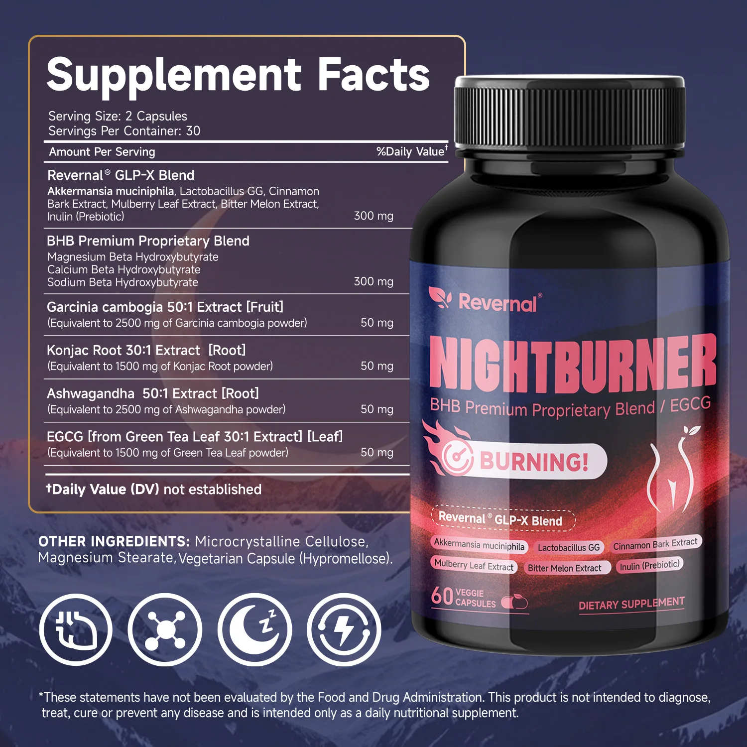 Revernal Night Burner Capsules – BHB, Green Tea & Apple Cider Vinegar | 60 Capsules