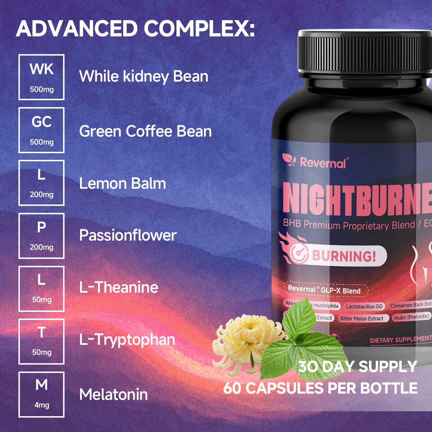 Experience the power of Revernal Night Time Burner Capsules, featuring a BHB premium blend for optimal health benefits.